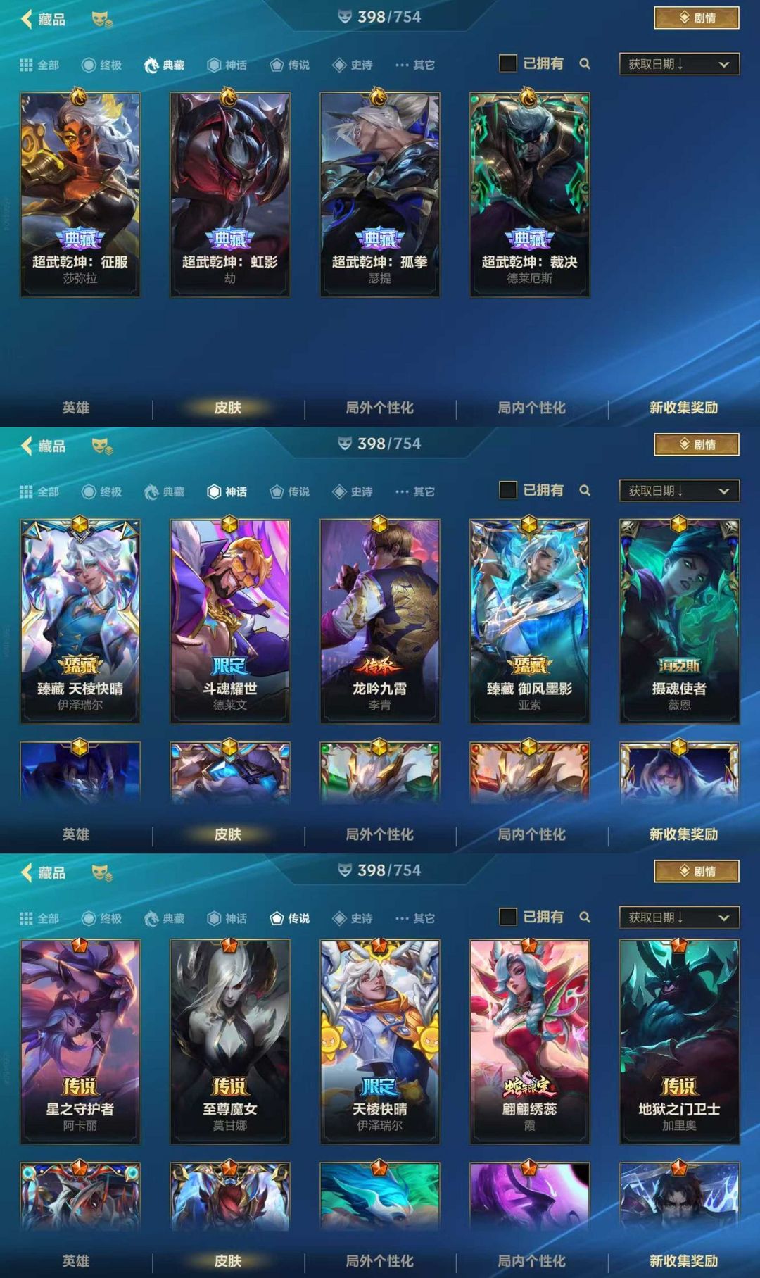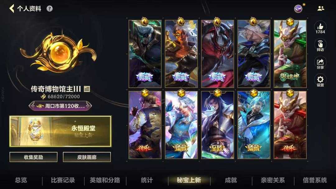 钻石可排位⚡️6.8w收藏分400皮满典藏⚡️至臻御风墨影⚡️龙吟九霄⚡️至臻心之钢永恩
