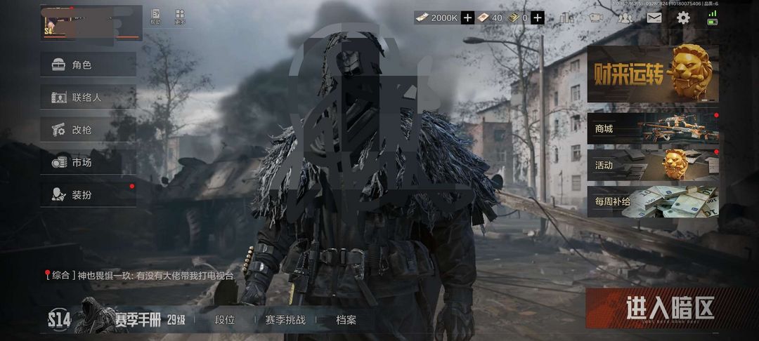 2000k纯币,有使徒皮肤,有六格保险,禁止开挂和炸队友,幸运分五级