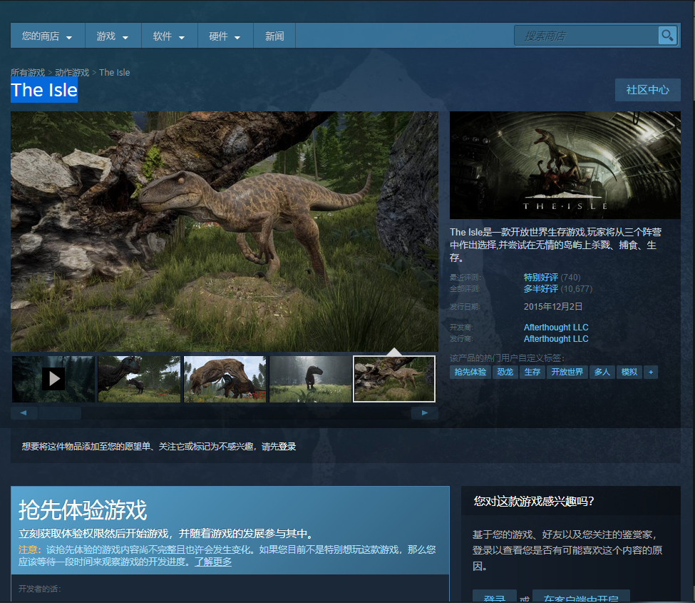 装备描述:The Isle是一款开放世界生存游戏玩家将从三个阵营中作出选择并尝试在无情的岛屿上杀戮、捕食、生存。