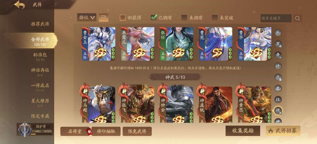 国护军354将 1110皮 五神武钟会黄忠马超张飞庞统十几纳贤和祈福