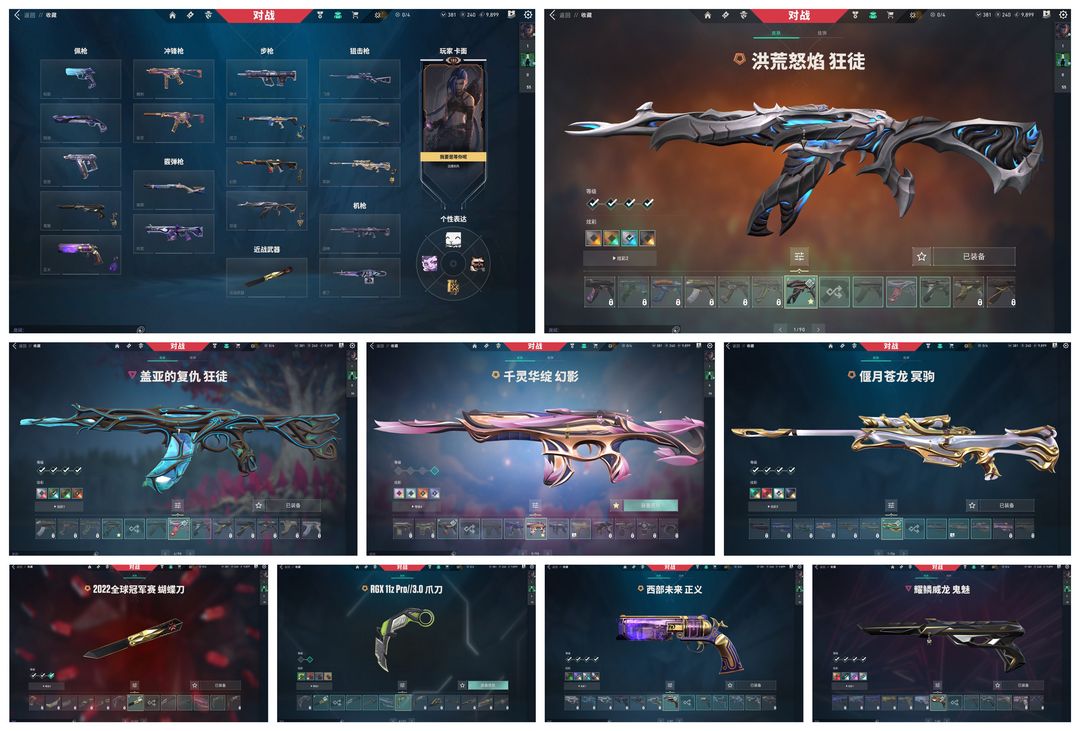 装备描述:22冠军套.盖亚的复仇.洪荒怒焰.千灵华绽.偃月苍龙.显卡爪刀.西部正义.耀鳞威龙.