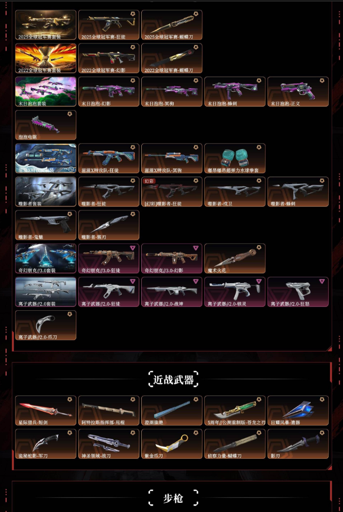 25冠军22冠军末日泡泡滋滋特攻队噬影者朋克3.0离子武器2.0苍龙之刃侦察力量蝴蝶刀影刃