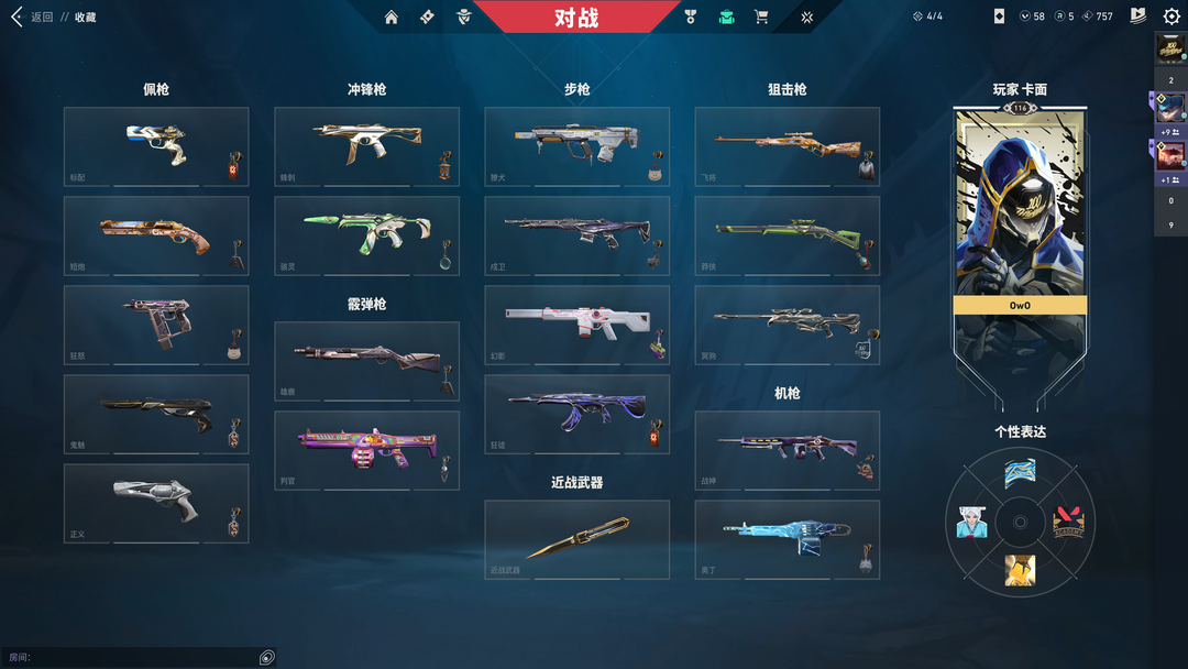 装备描述:25冠军套,22冠军幻影,黑波之刃,掠夺抓刀,苍龙之刃显卡蝴蝶刀显卡ak显卡蟒侠,超时空刀和超时空ak,光荣ak,古神幻影,电玩幻影,猴子ak,天界大狙,末日泡泡幻影,电音幻影,侦查幻影,威龙ak和威龙鬼魅,离子正义