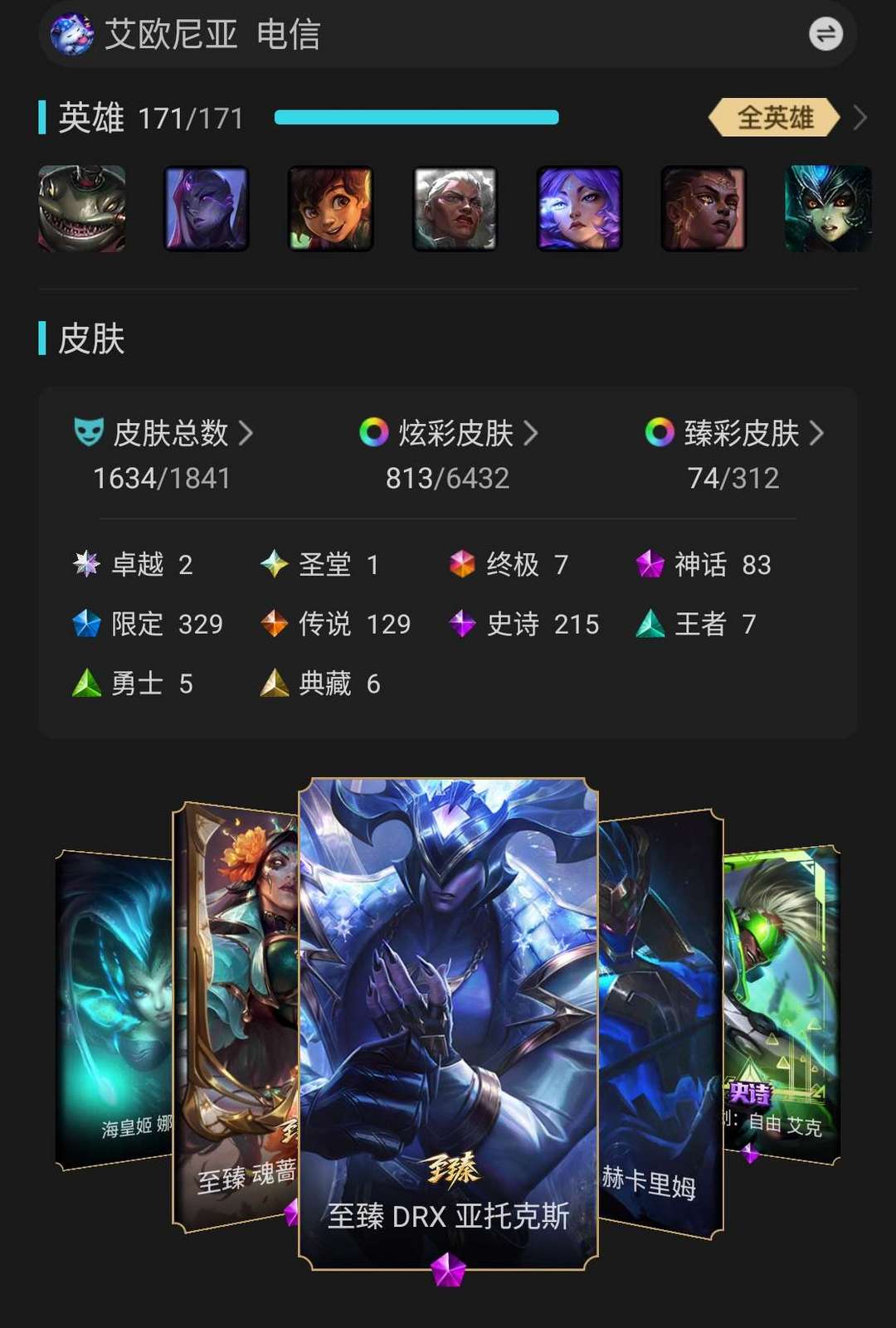 艾欧尼亚:1634皮肤*签名版阿狸/圣堂金蛇瑟提/神话永恩艾克VN/基地终结爆炸特效;神话棋盘小英雄