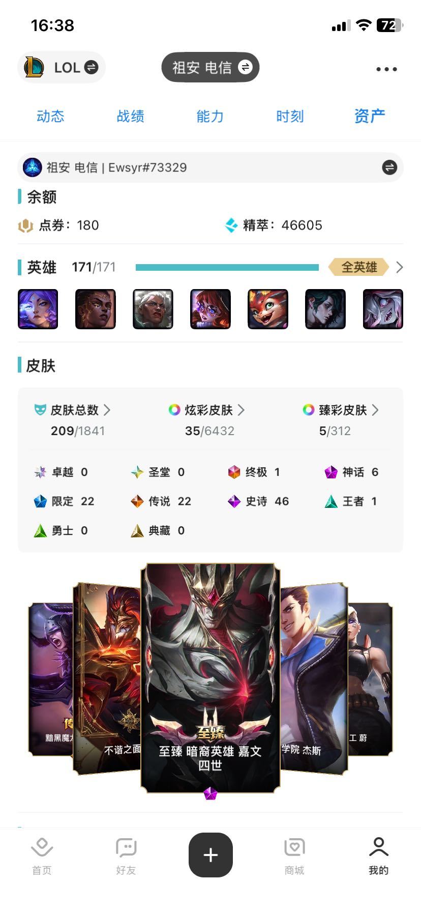 联盟一区❤️全英雄❤️皮肤209❤️至臻墨之影亚索❤️可排位