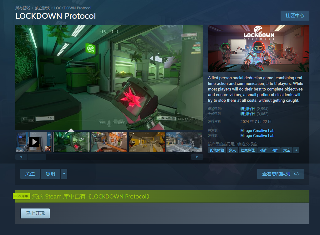 装备描述:一款第一人称社交演绎游戏,结合实时动作和交流,3至8名玩家。虽然大多数玩家会尽最大努力完成目标并确保胜利,但一小部分持不同政见者会不惜一切代价阻止他们,而不会被抓住。