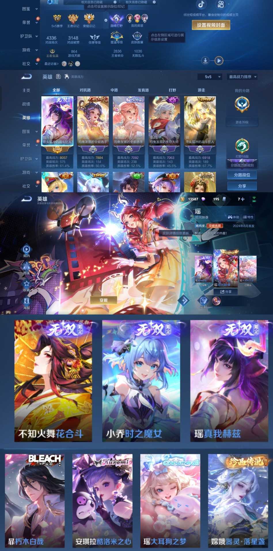 限制: 租号1次及以上 | 撤单率<49%才可租用此帐号装备描述:时间到了还登录白玩或者顶号全部改密拉黑处理永不解除,顶号机器会秒禁玩改密,顶号不仅拉黑还没得玩,赚三两块不容易,请理解谢谢。 ❤❤❤❤❤❤❤❤❤❤❤❤❤❤❤ 请勿开挂,挂机,送头,骂人,撤单后游戏等如有违规永久拉黑永不解除。 重置二级密码不要费劲了,号主每天都会上号查看,多行不义必自毙,人在做天在看,多做好事多自律,少做缺德事。 该号英雄123个皮肤183个,典藏1个,无双3个,珍品传说4个,星传说2个,传说13个,史诗53个,祝你游戏愉快
