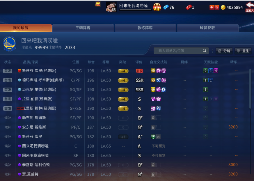 段位全明星UR库里ssr考辛斯里德pk姚明单s伯德穆林街头王朝可玩排位购物留着段位重置技能不要动谢谢