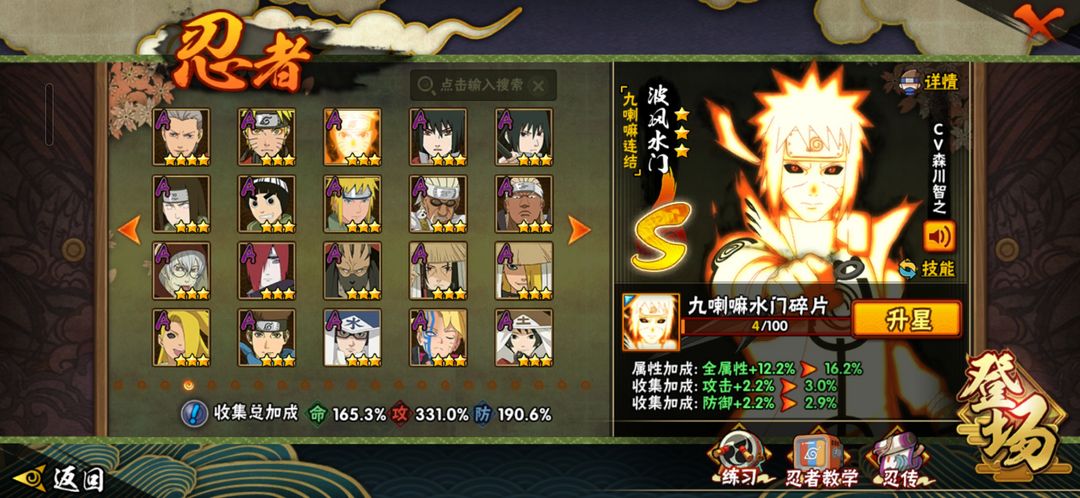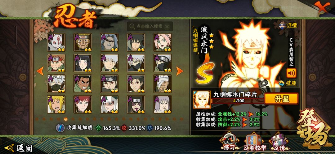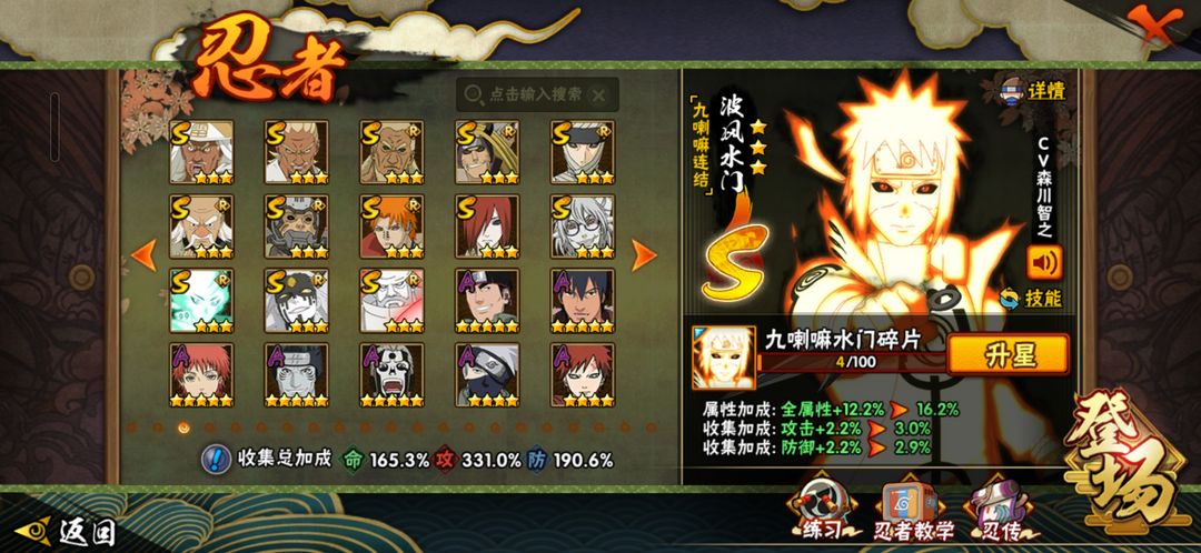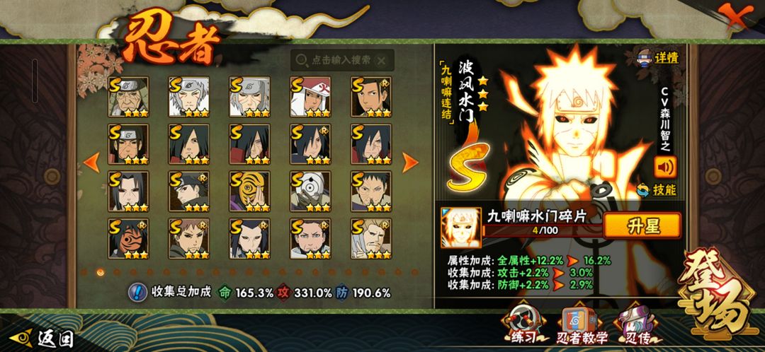 装备描述:九喇嘛鸣人漂泊佩恩死门凯【63s】忍战带土✨3000w✨暴怒带土✨鸡翅佐助✨武士扉间