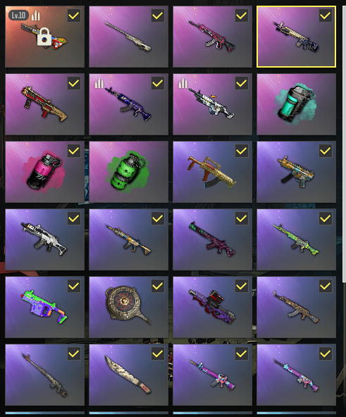 禁排⭐ 十级爆裂AUG ⭐1级权志龙AUG⭐朱芳芳战神套⭐3色烟雾弹⭐湮灭762⭐金面⭐海藻M24