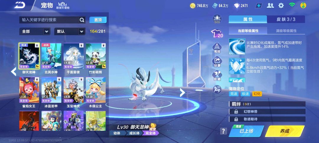 装备描述:8 机甲, 7联赛车,皮肤多,2 神宠(熊猫龙神),黄冠已开。