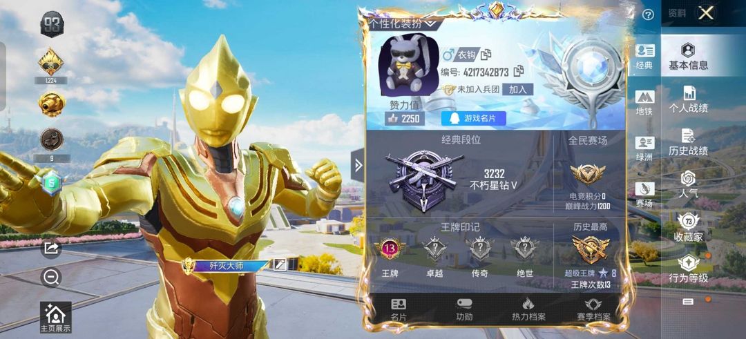 限制: 租号8次及以上 |装备描述:男神素材号/金迪迦/星际漫游/tt追光队服/STE追光队服都市寒蝎粉色回忆小熊背包小鸟头盔