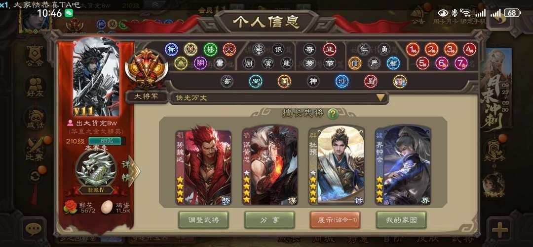 限制: 租号2次及以上 |装备描述:官方一等大将军,三卡齐全。 目前有几千菜篮子,乱砸必拉黑! 势魏延 友诸葛亮 势太史慈 曹髦 动神甘宁 双形态杜预 双形态界钟会 双形态司马昭 回廊烈箭贯云动谋黄忠 动谋诸葛亮 天子令动SP赵云 天子令动星周不疑 谋夏侯氏 谋张角 动戏子 奇门动孙寒华 回廊动大宝 动王元姬等领衔70史诗一等大将军。