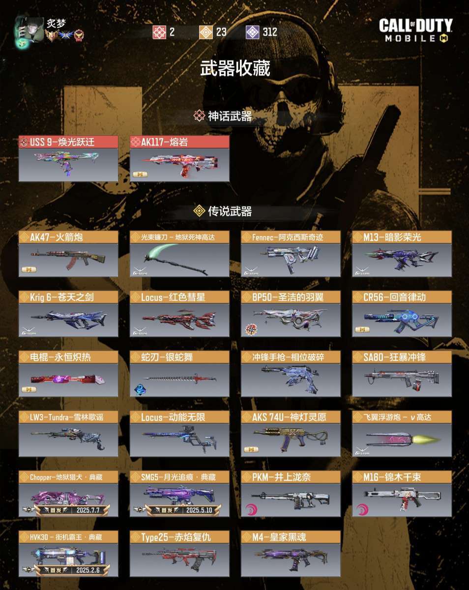 满级幻光 动能 狼狙 莉可莉丝联动 七大罪联动 高达联动武器全收集 牛高达 等手子皮肤